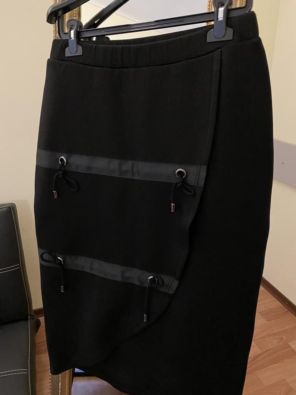 Оригинальная юбка-карандаш из плотного трикотажа от NÜ Denmark. Имитация запАха. Декорирована тесьмой и шнурками. Прекрасно садится на М, небольшую L. Достаточно тёпленькая.