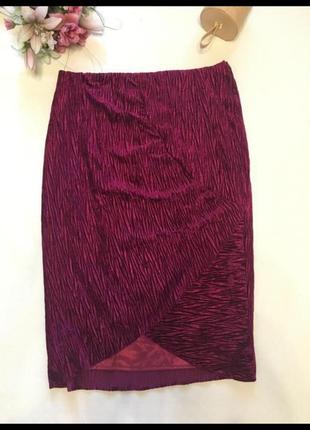 Юбка впереди асимметричная. Ткань объёмная. Сбоку на змейке.На подкладке. Длина-81 см Пот-47см Поб-59см