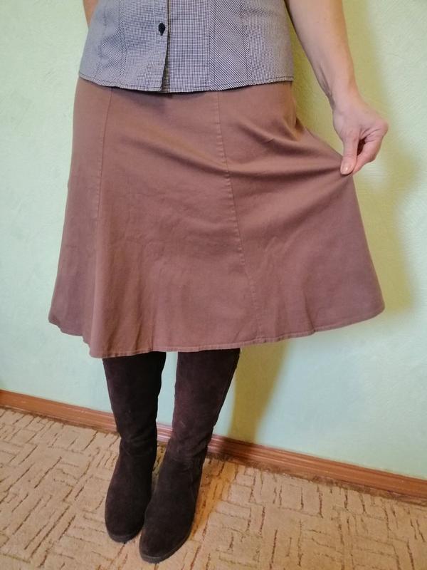 Юбка лёгкая и удобная. Длина - ниже колен. Материал немного тянется.