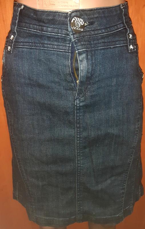 Синя джинсова спідничка Fugu р38 98%котон 2%еластан вся 52см талія 44-48см стегна 50-58см