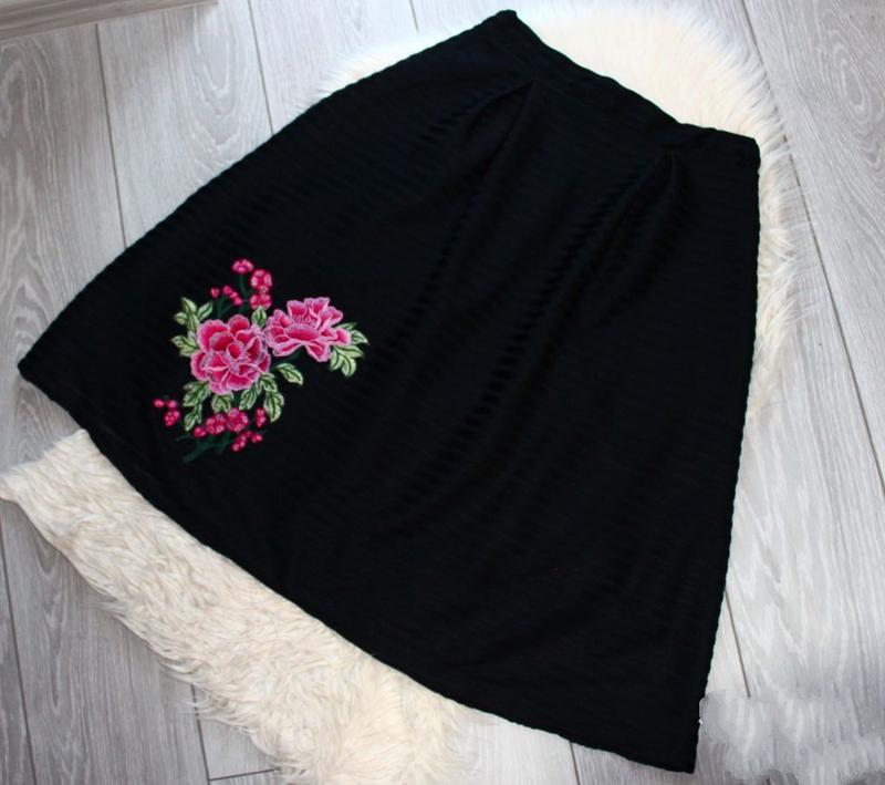 Спідниця чорна дзвін у горизонтальну текстурну смужку з вишивкою, uk, 12 (3304)