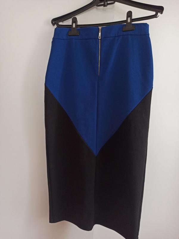 Український виробник Grass. Б/у, одягала пару разів. Неймовірно виглядає з білою сорочкою. Об'єм талії 68 см, стегон 90см, довжина 76 див., довжина розрізу позаду 25 див. Застібка зпереду. Тканина трохи тягнеться