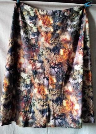 Сучасна,трикотажна,на підкладі,пояс на гумці. Неймовірний гранжевий мереживно-квітковий принт. М"яка на дотик,добре розтягується. Довжина-74 НОТ-47