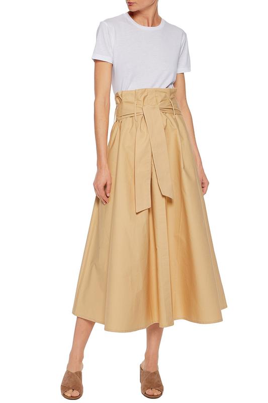 Дуже красива спідниця., склад - бавовна. Застібається спереду на змійку, затягується поясом. по всій довжині фальшпланка. Зшита із зустрічними складками. Тримає форму.