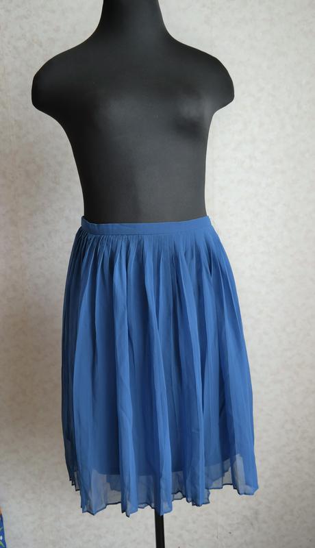 Синяя фирменная юбка 42 размер на подкладке. Модная модель - сзади длиннее, чем спереди. Замеры: длина спереди 53 см, длина сзади 59 см, талия 80 см