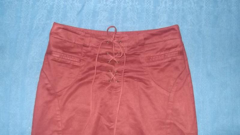 Дуже красивого винного кольору спідниця з матеріалу під замш довжина міді. Розміри: по поясу 38-39,5 см, довжина 63 см, по стегнах 46-49 см)