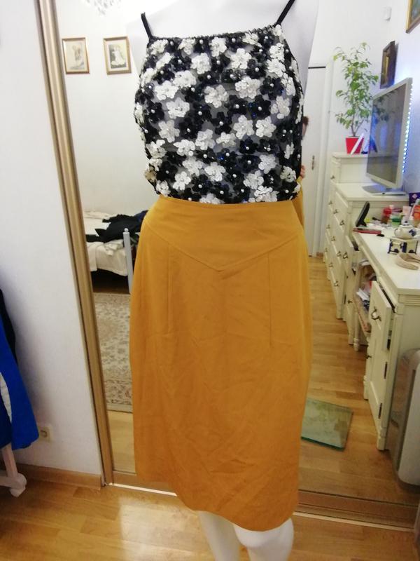 Спідниця міді, дл. 58,5 ПІТ 35,ПОБІДИ 54, в бічних швах кишені, на підкладці.