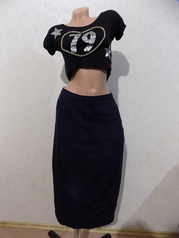 Спідниця міді щільна нижче колін синя лляна фірмова розмір 48