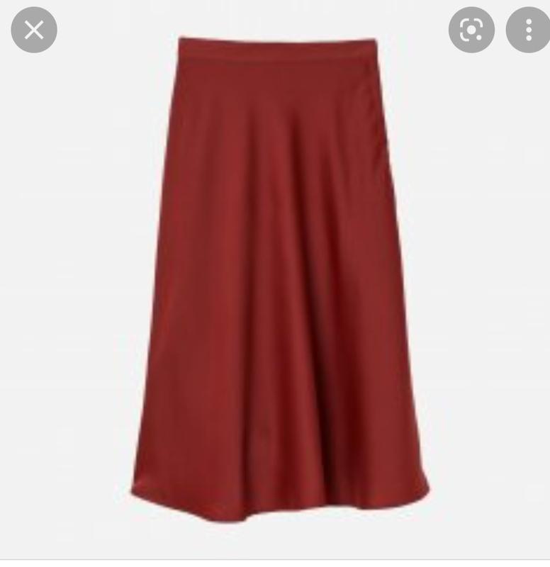 Спідниця завдовжки до середини іклиткири з тканини, що драпірується, з високою талією й потайною змійкою збоку. Без підкладки.