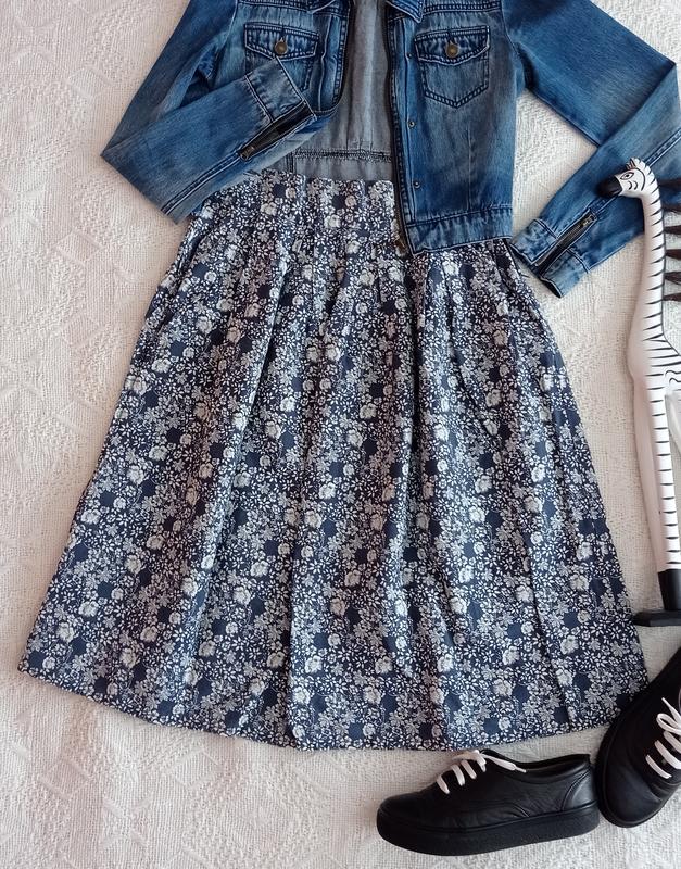 Джинсова спідниця в зустрічну складку. Талія 74см, довжина 70см.
