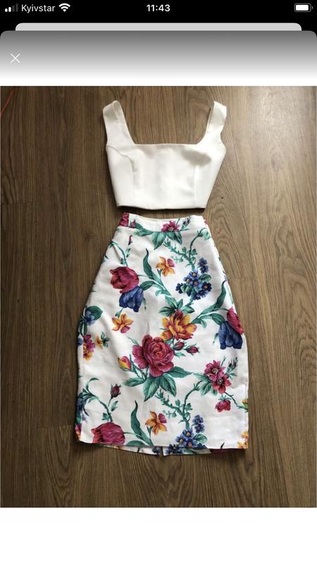 Легка, літня спідничка, на тоненькій підкладці, є непомітні шлюфки на ремінь, ззаду на замочок, внизу ззаду маленька розпорка, стан нової. ВІД 68см, ПРО 92, довжина 57см