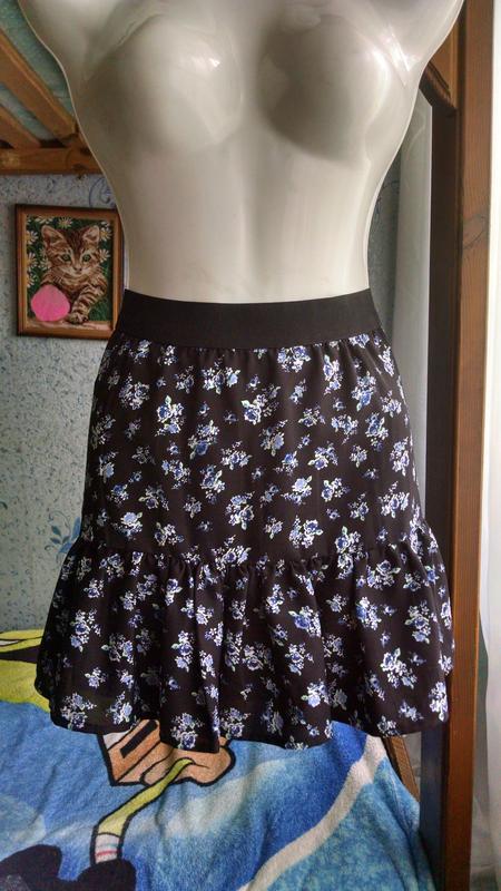 Стильна,літня спідниця в квітковий принт 44 р в новому стані. Довжина-39 см,пояс-резика 35 см,тягнеться до 47 см,стегна-47 см,має підкладку.