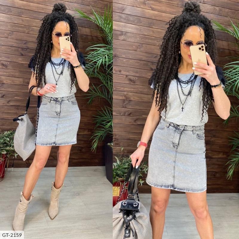 - - код виробника; Спідниця GT-2159 Ціна: 360 грн. Розміри: 26, 27, 28 Виробництво туреччина Джинс з стрейч, добре тягнеться, Добре сідає по фігурі ------------- 26 талія 35 стегна 42 довжина 44 27 талія 35 стегна 43 довжина 44 28 талія 36 стегна 44 довжина 44 29 талія 36 стегна 45 довжина 44 30 талія 37 стегна 46 довжина 44 31 талія 38 стегна 47 довжина 44 Сірий