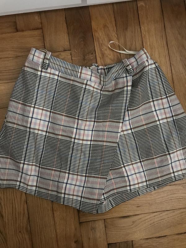 Спереду спідниця, ззаду шорти. На ріст 160-165. Є шлейки для поясу, талія - 32 см, є гумка. Недоліків немає, стан ідеальний