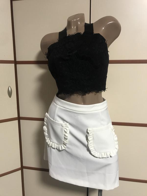 Дуже красива спідничка трапецією,розмір М(вказаний 10)довжина 42см,пот 36см,поб 46см,тягнеться.