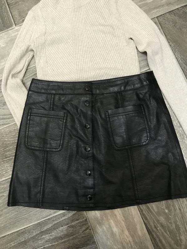 Міні спідниця з штучної шкіри H&M, на кнопках! Довжина 37, пояс 38, ширина понизу53