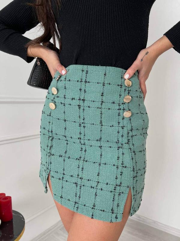 Трендовая мини юбка из твида. Спереди разрез. Застёгивается сзади на потаенную молнию. Модель:1317 Размеры 42,44,46,48 Ткань:Твид Шанель Расцветки:мята, голубой, сирень Измерения: талия/ бедра/ длина 42р-32/42/41 44р-34/44/41 46р-36/46/42 48р-38/48/42