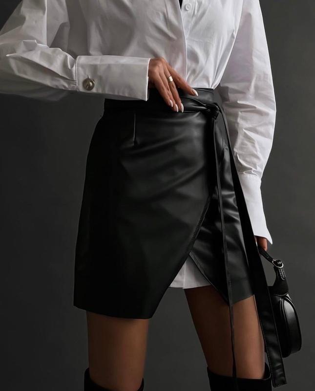 Котонова сорочка подовжена .Спідниця екошкіра на запах.