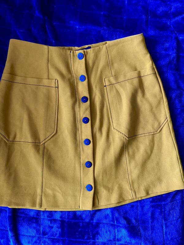 Спідниця Гірчичного кольору Розмір 10 , 38р M-L Склад : 65 % поліестр , 32% віскоза, 5% еластан Стан : нормальний (незначні катишки та ниточки)