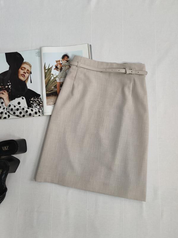 🌿бежева спідниця H&M з поясом, крій прямий, з підкладкою Розмір:38 Заміри: ширина поясу 36 см, ПО бедер 46 см, довжина 50 см