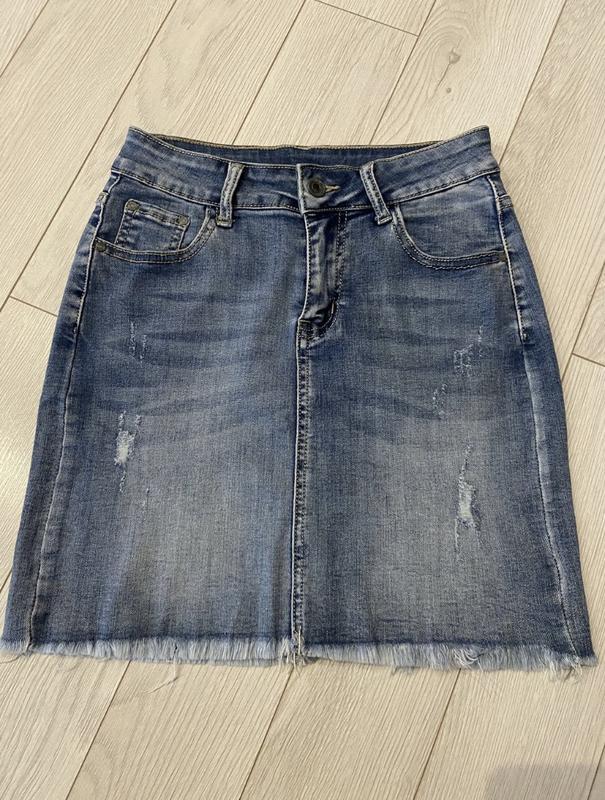 Джинсова спідниця. Розмір 26 (S), сяде і на М. Сідає дуже гарно по фігурці. Добре тягнеться, приємний до тіла матеріал. Стан нової речі, одягалася декілька разів. Підійде на дівчинку до 175 см зросту.