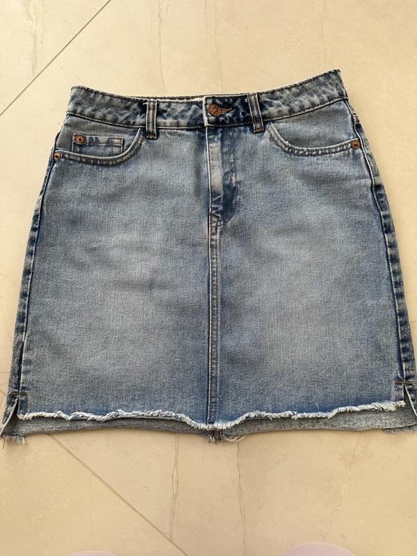 Спідниця з різних кольорів Джинсу. Перед трішки коротший, сидить гарно, одягаючи на талію. Одягалась, декілька разів.