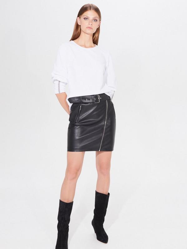 Школаіряна спідниця з застібкою спереду під красивий пояс з декоративними блискавками на карманах чорного кольору бренд mohito розмір Xs але краще на S