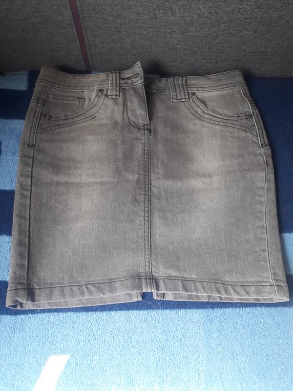 Джинс стрейч, тянется. Серого цвета. Размер 27, ПОТ 38 см, ПОБ 42 см, длина юбки 40 см. Состояние идеальное.