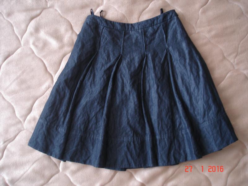 Фірмова, німецька спідниця, з ефектом мятості, темно сірого кольору.На підкладці та застібки, блискавки з боку.Склад тканини: бавовна 67%, віскоза. Завмер:ПОТ - 38см,ПОБІДИ - 50см, довжина-56см.Всі речі на фото продаються.Дивіться мої оголошення,багато цікавих фірмових речей.