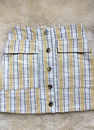 Новая, не носилась. Размер 36 S. Подойдет также на лето. Фасон юбка-трапеция. Карманы истинные. Ткань букле. Не толстая, но и не просвечивает.
