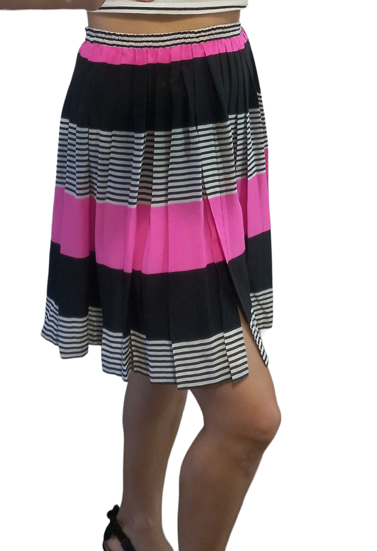 Спідниця із 100% шовку, у складку, спереду у складі невеликий розріз. На резинкі. Зроблено у Франції. Довжина – 49 см, напівобхват у талії – 31 см+ тягнеться.
