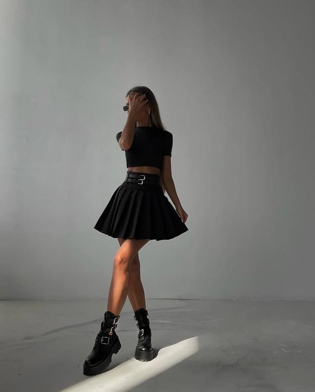 Стильные юбочки, которые всегда в тренде 💥 Ремни на поясе добавляют интерес к твоему образу. Ремни идут в комплекте ✅ ▪️Ткань - тиар ▪️Цвет- черный, серый ▪️Размеры - 42-44, 44-46 ▪️Цена -520 грн