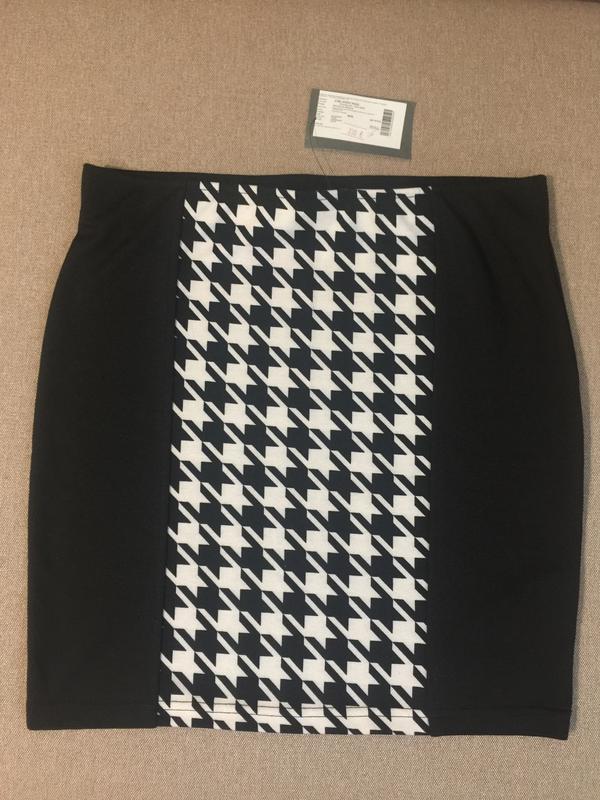 Чорна міні-спідниця з вставкою "пупсик" Розмір М Довжина - 42 см Об'єм талії - 74 см Об'єм стегон - 84 см