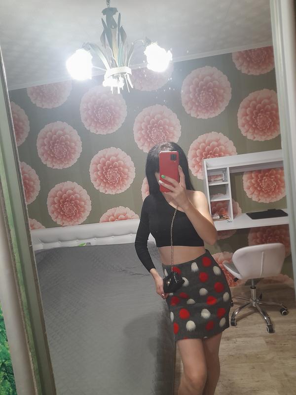 Дуже крута спідничка з теплої тканини в кульках з хутра . Сидить супер. Стан ідеальний . Підійде на розмір s, можливо і "м"