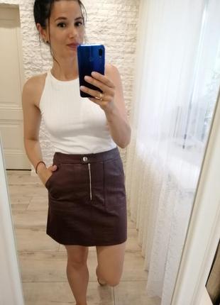 Твоя идеальная юбка от "GEORGE" Невероятный шоколадный цвет💕💕💕 Очень крутой крой трапеция, шаго принт Материал, качественный заменитель кожи Размер S-M, ориентируйтесь по замерам П.О.Т. 37см. П.О.Б. 47см. Длина 42см