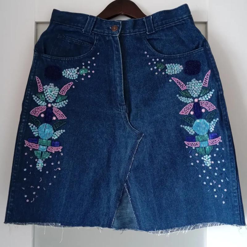 винтажная красивая джинсовая юбка, вышитая бисером, в отличном состоянии.