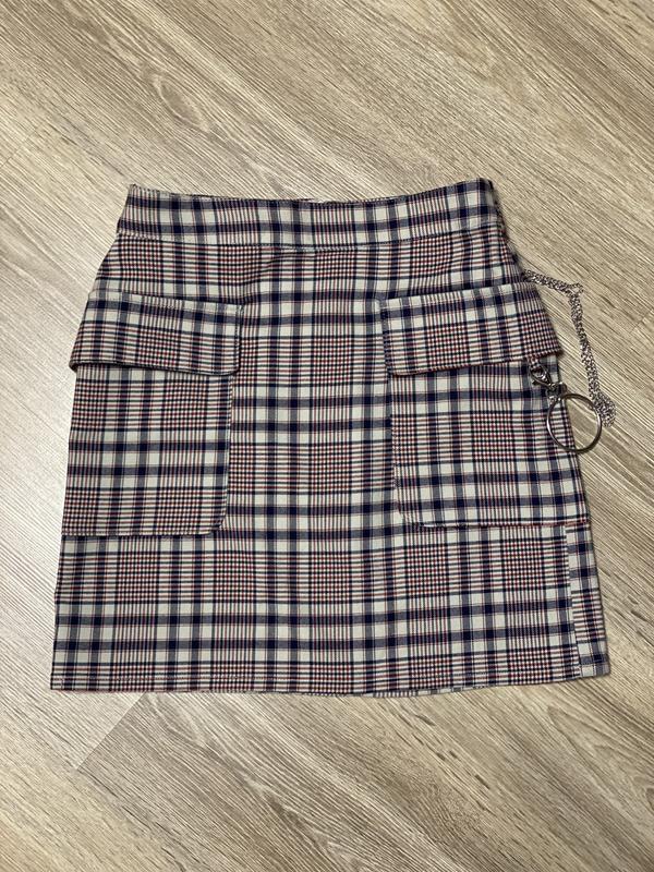 Новая юбка в клетку. На кармане цепочка, снимается. Не подходит размер.