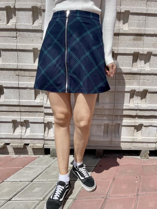 Спідниці темно-синього кольру, без карманів, без підкладки, приємний до тіла. Річ нова, з біркою. Зріст моделі 170 см.