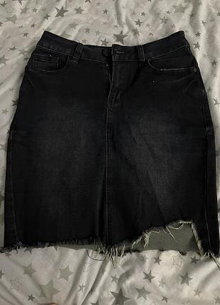 Джинсова спідниця, в темно синьому кольорі, з невеличкими пошарпанями