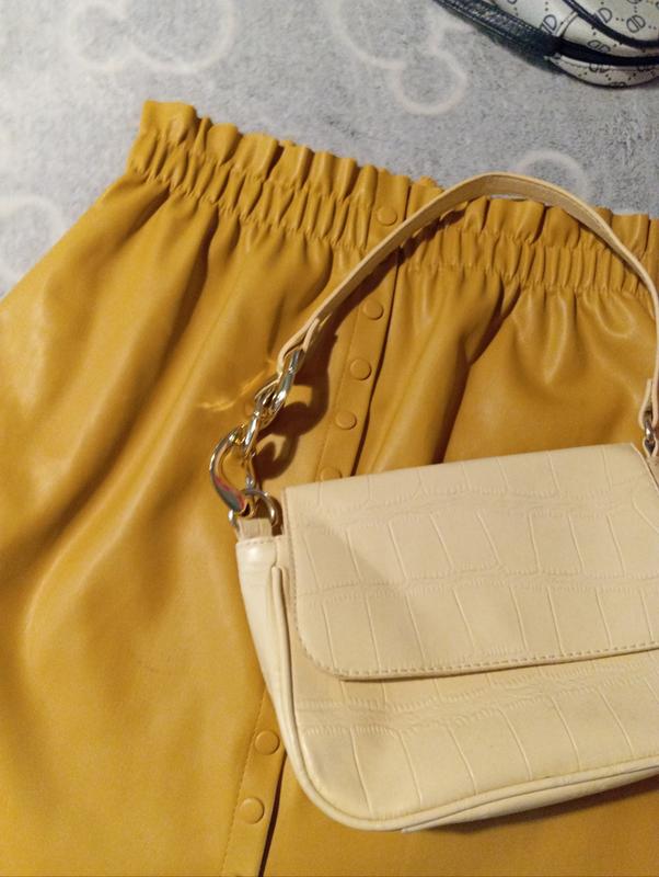 Юбка в комплекті з сумочкою . Можно окремо вигляд нових речей. тканина юбки ,дуже схожа на дотик шкіряна. ПО талії 43 см дліна 45 см