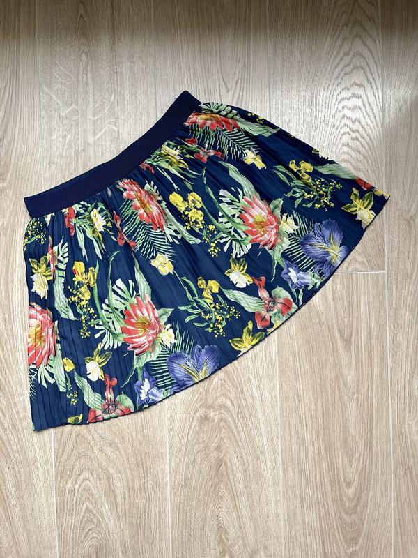 Спідниця синя з квітами в ідеальному стані на резинці. Розмір С