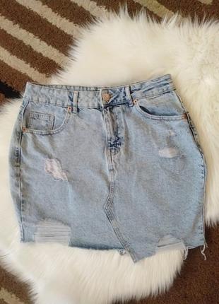 джинсова спідниця з щільного джинсу, не тягнеться, без дефектів об'єм талії 80 см бедра 100 см довжина 40 см