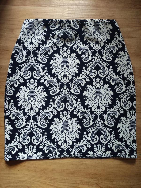 Жіноча трикотажна спідниця міні темно-синього, майже чорного кольору з білими візерунками. Спідниця на м'якій резиночці, тягнеться. Підійде на розмір XS-S-M. Напівобхват талії - 30см (резинка тягнеться) Напівобхват стегон - 42см Довжина - 43см