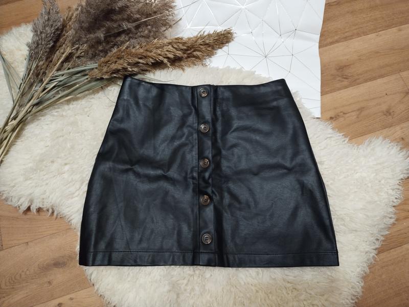 Стильна спідничка з екошкіри. Ззаду на замочку. Довжина-39 Пояс-38 Бедра-50 Стан без бірки але не ношена