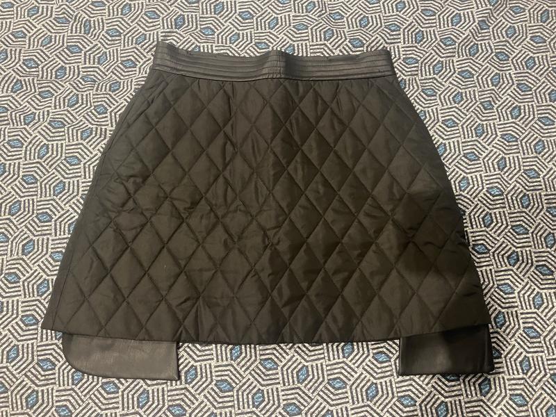 Юбка от украинского бренда Адете номер 5 Стеганая, на подкладке, с кожаными карманами и поясом. На размер м. Одетая 1 раз