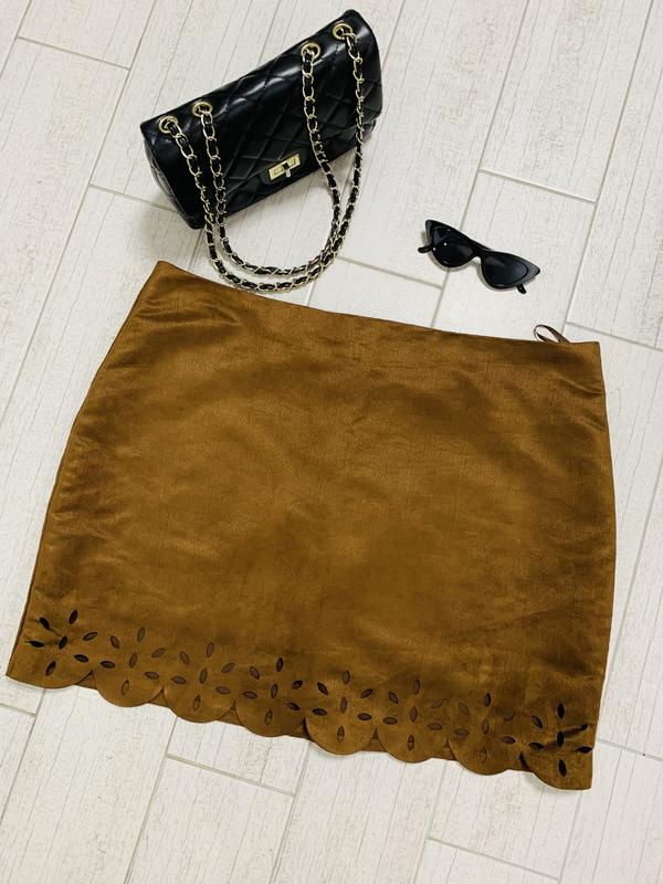 Жіноча спідниця під замш в розмірі 2-3xl в коричневому кольорі на підкладці