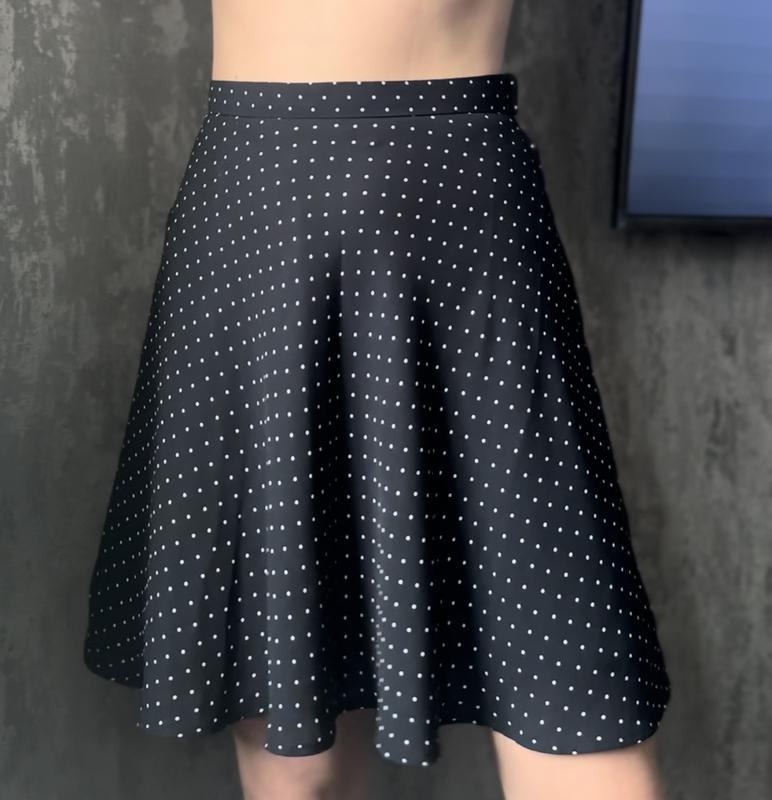 Юбка темно-синего цвета в горошек Размер S, чуть выше колена, завышенная талия ПОТ - 35 см Длина - 53 см