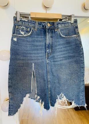 Юбка бренд BIK BOK, с нереальной рванкой Размер S Длина посередине 55 см Пояс 37 см Бедра 45 см Джинс не тянется