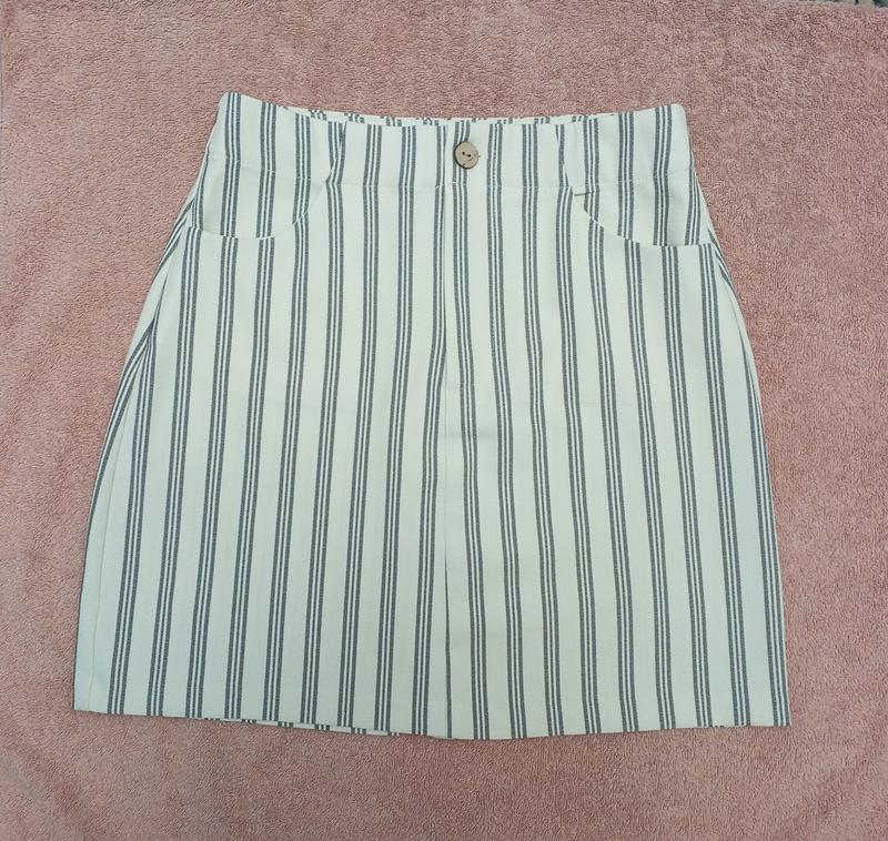 Підписуйтесь на мою сторінку. Спідниця у сіру смужку. PULL& BEAR Відмінний стан. Склад не написаний Тканина трохи тягнеться. Розмір S Дивіться виміри. Колір кремовий, бежевий. Дві кишені, ззаду маленький розріз ПОТ 32 ПІБ 42 Низ 47 Довжина 41