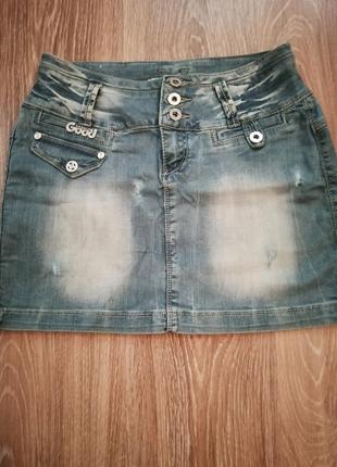 Продам красивую, оригинальную, удобную, короткую, джинсовую юбку. Длина юбки 35 см, ширина в поясе 40 см, ОБ по кругу 88 см.